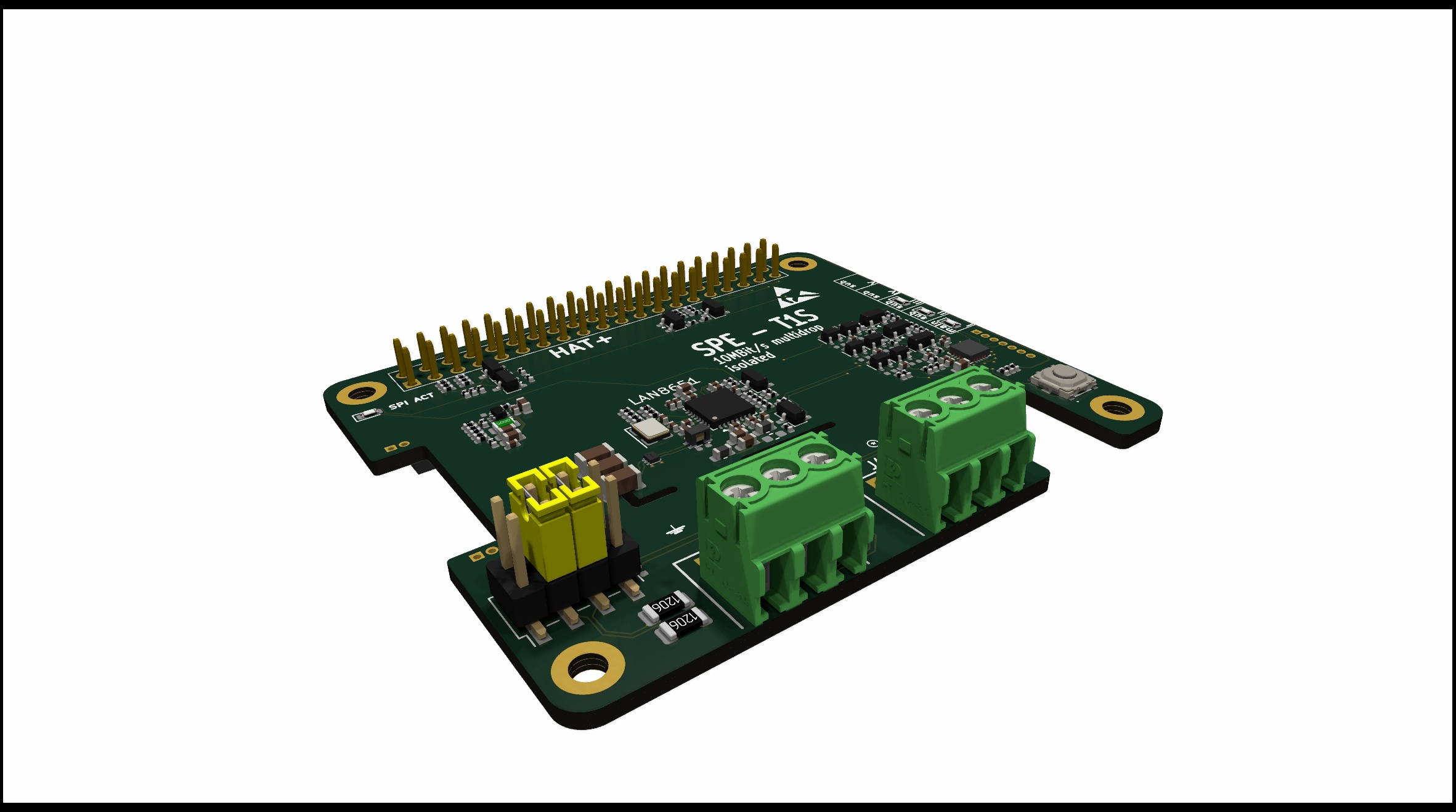 This HAT enables multidrop communication based on 10BASE-T1S Ethernet with an onboard MAC-PHY.